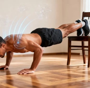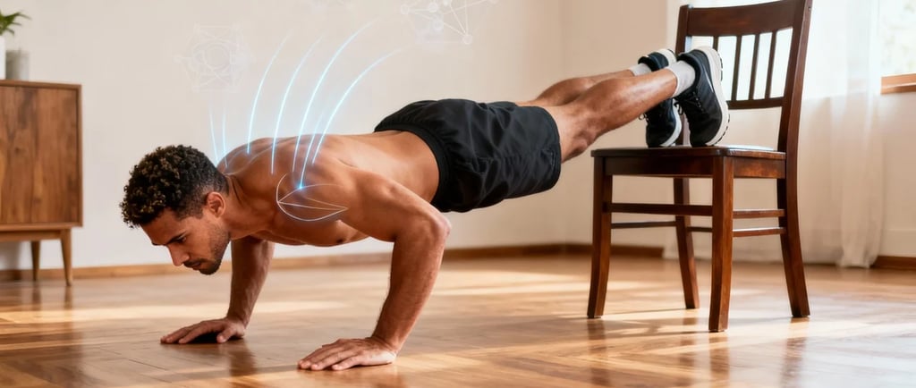 A flexão de braço é o exercício de empurrar mais acessível e eficaz para membros superiores. Trabalha peito, ombros anteriores, tríceps e core — tudo ao mesmo tempo, com zero equipamento.
