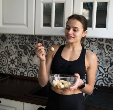 Lanches: Iogurte grego, shake de whey com banana, atum em lata, queijo cottage, ovos cozidos, castanhas (com moderação).