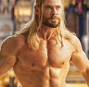 Chris Hemsworth é dedicado ao seu shape e investe em treinamento intensivo, especialmente ao se preparar para papéis como Thor. Sua rotina inclui musculação, exercícios de condicionamento físico e resistência, o famoso treino funcional, realizados seis dias por semana. Revista Oeste